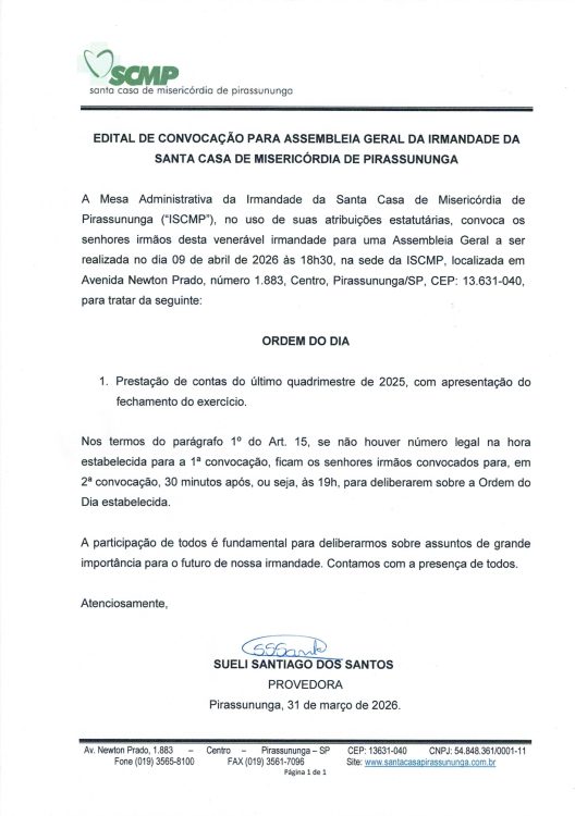 Convocação Assembleia Geral – 09/04/2026