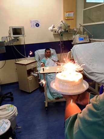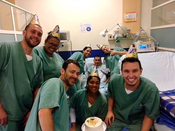 A equipe multiprofissional da Santa Casa de Misericórdia de Pirassununga comemorou o aniversario de nosso paciente Antônio Ap. dos Santos que ficou internado na UTI da nossa instituição por 3 meses.